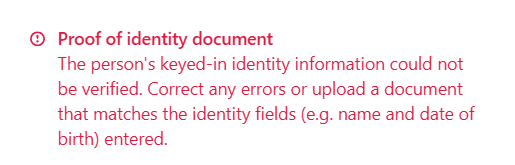 If you have already uploaded your ID, it is possible that it could not be verified. If this is the case, you will see the following once you click on the individual under ‘Management and ownership’ on the Stripe form: