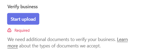 If required information is missing, Stripe will mark the section as incomplete until the information is provided, e.g.: