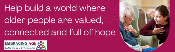 Embracing Age is a Christian charity working towards a world where older people are valued, connected and full of hope, by mobilising trained volunteers and equipping churches to combat loneliness and bring a sense of connection. Your support will bring companionship, hope and joy to older people.