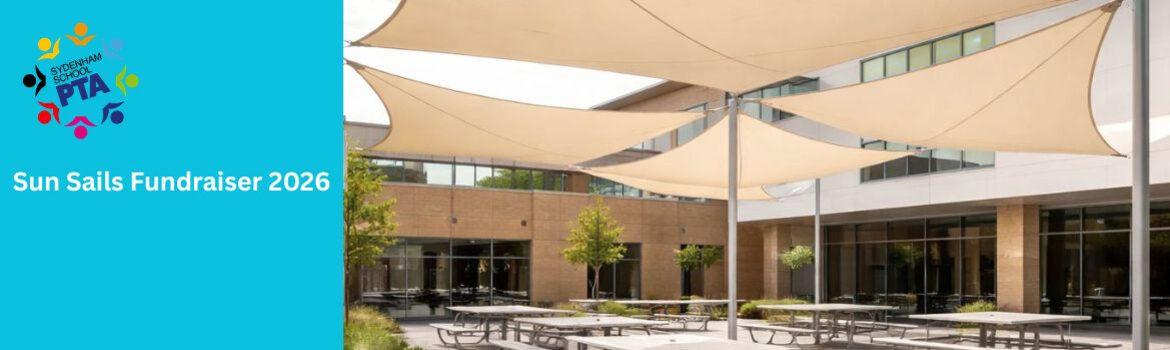 With your generous support Sydenham PTA are fundraising £5,000 to install permanent sun sails in key outdoor areas of Sydenham School, giving students essential sun (and rain!) protection during break, lunchtime, and for other outdoor activities year round.