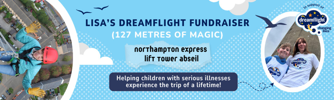 When I abseiled 127 metres down the Northampton Express Lift Tower, it was my way of saying thank you for the magic Dreamflight gave Hugo. Seeing this year’s trip depart reminds me why this challenge mattered and why your donations make such a difference.