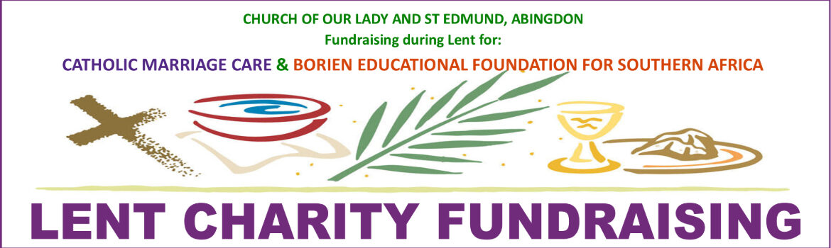 We are fundraising during Lent for two registered charities: Marriage Care (UK Registered Charity: 218159) and BEFSA (Borien Educational Foundation for Southern Africa (UK Registered Charity No. 1106964)