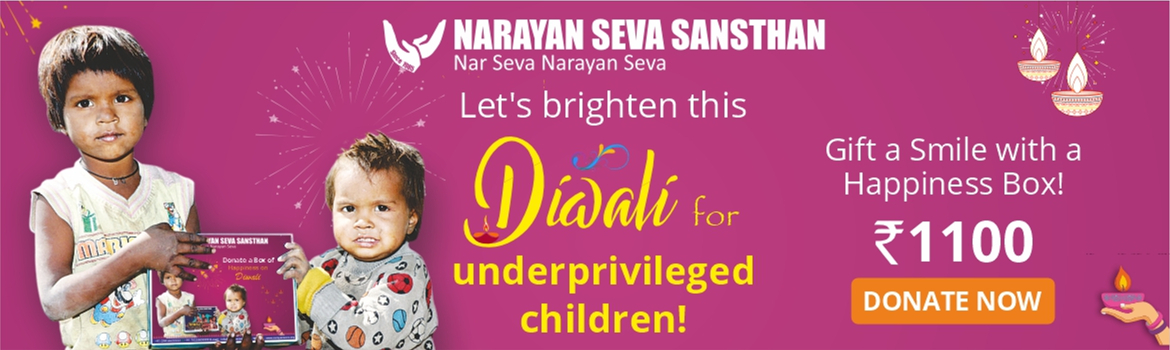 This Diwali, let's unite to brighten the lives of underprivileged children with the magic of 1000 gift boxes from Narayan Seva Sansthan. For just 1100 INR, you can gift a smile and spark happiness in the hearts of these children. Your generosity will not just offer a gift but also sprinkle the essence of love, light, and joy into their lives. Join us to make their Diwali special and witness the radiant transformation of their spirits.