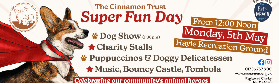 The Big Walk and Super Fun Day will take place on Monday 5th May in Hayle, Cornwall. The day will be a celebration of £40 wonderful years of The Cinnamon Trust and we hope to raise much needed awareness and valuable funding for The Trust.