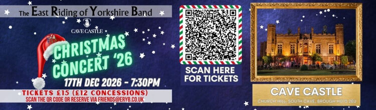 Join The East Riding of Yorkshire Band for their spectacular Christmas Concert ’26 at the stunning Cave Castle. With the warmth of traditional carols, sparkling brass band favourites, and plenty of Christmas cheer, this is the perfect way to celebrate the season.
