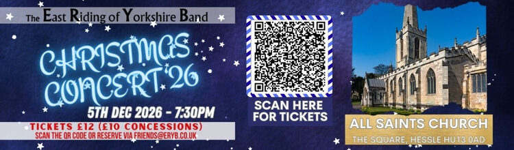 Join The East Riding of Yorkshire Band for their spectacular Christmas Concert ’26 at All Saints Church in Hessle. With the warmth of traditional carols, sparkling brass band favourites, and plenty of Christmas cheer, this is the perfect way to celebrate the season.