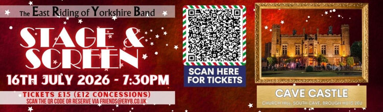 Join the East Riding of Yorkshire Band for a spectacular Stage and Screen Concert set in the stunning surroundings of Cave Castle. Experience the magic of the big screen and the thrill of the theatre brought to life through powerful brass band performances.
