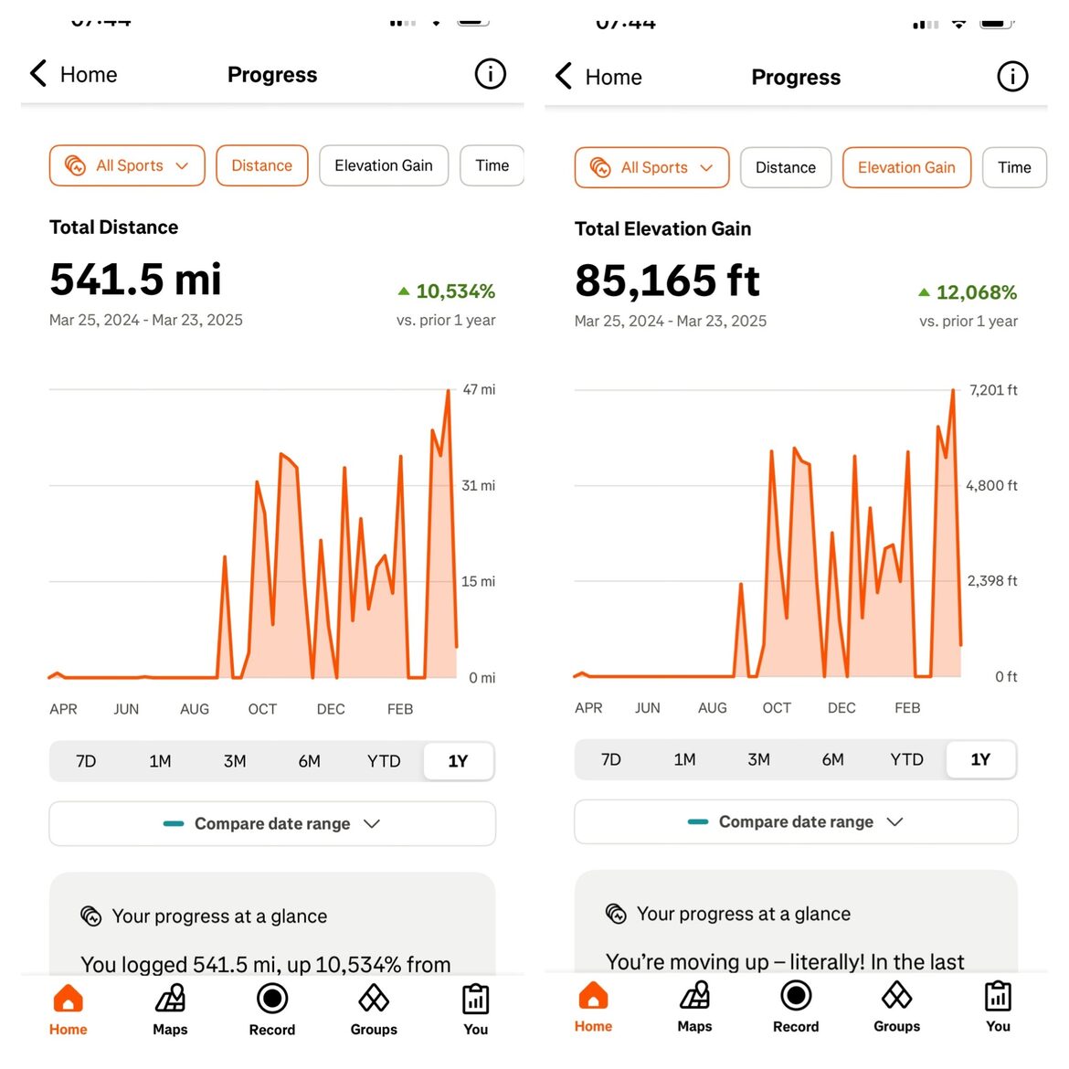 I covered 186miles and 17,000 feet of elevation gains over the 7 days,