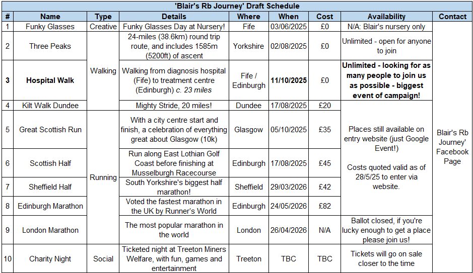 Blair is surrounded by an extraordinary team of people supporting him and each other daily. Blair’s immediate family live in Fife Scotland and South Yorkshire England, all of whom are determined to undertake an event of some kind in an effort to receive sponsorship donations to this page. Whilst some events are already confirmed, many are still being finalised. It is our intention to run this fundraising campaign until June 2026. Our schedule of events is likely to continue to evolve. This link and page is the only fundraising medium in Blair’s name, by Blair’s family. We have always been keen to launch a singular campaign to maximise potential donations and hopefully, further grow with matched funding. We want people to donate to sponsor Blair, not individual activities or people. This is a team effort! Thank you to all our amazing participants and message us if you’d like to get involved! You’ll receive the warm thanks and support of this platform for raising money and awareness, without having to setup your own fundraising page and no minimum targets to worry about! We’ll be sure to promote and recognise your efforts wrapped in a CHECT t-shirt! Simply do something new, or undertake an existing event with us, then use this page for donations (remember one big team)!