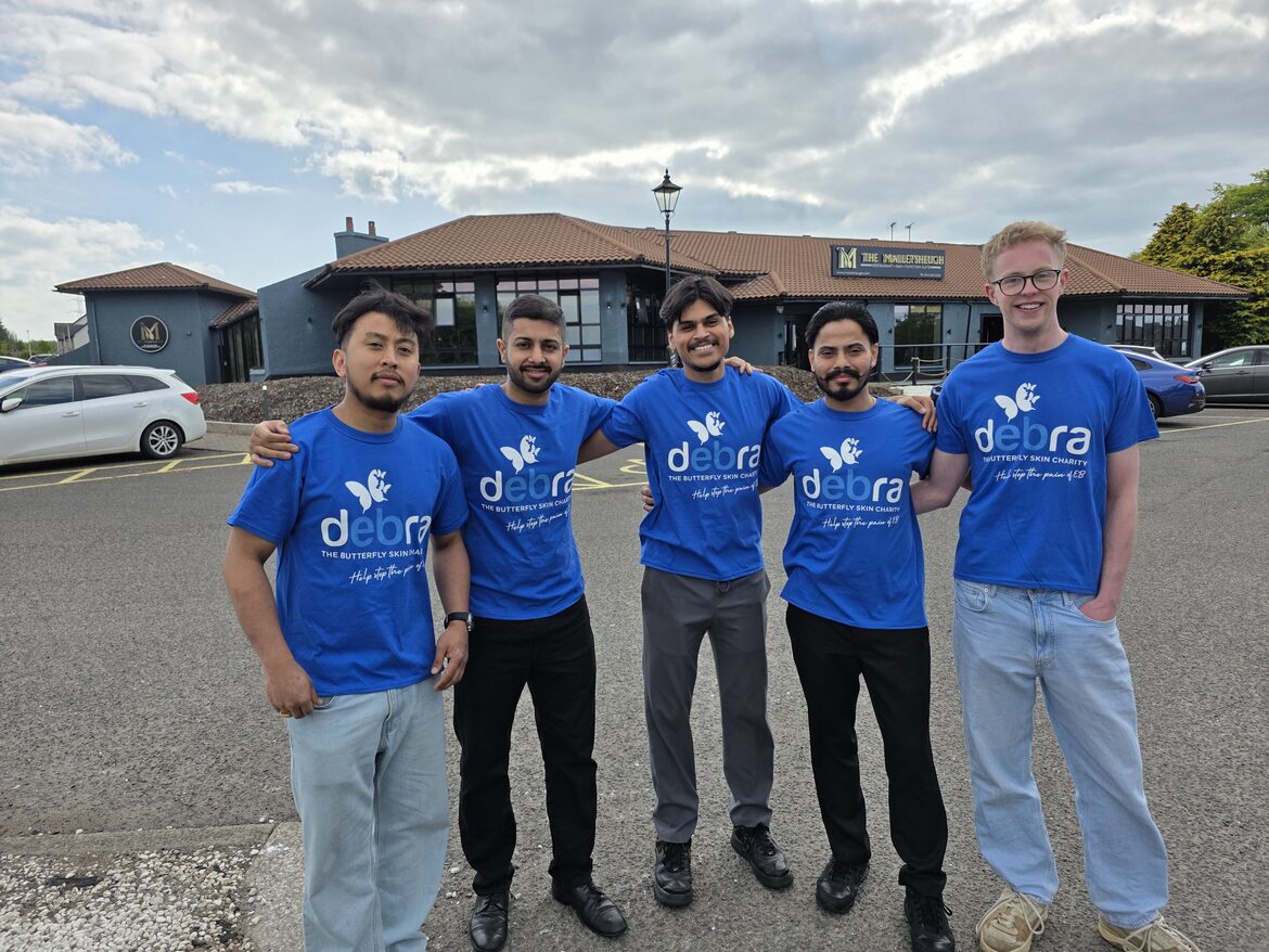 Our team – Aman, Bobby, Humza, Gucci, Arpan, Rhys, and Sabi – is proud to be part of Team EB, raising vital funds and awareness for those living with this devastating disease.