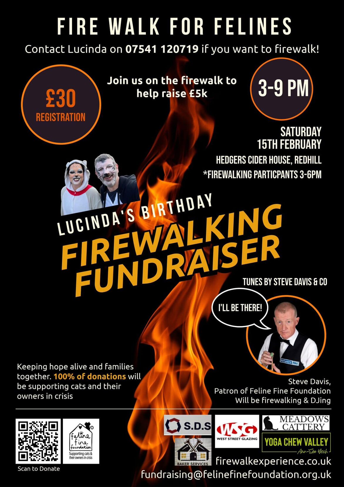 In two weeks’ time I will be walking on hot embers to help raise funds for Feline Fine Foundation, that wonderful cat charity that I’m always going on about.