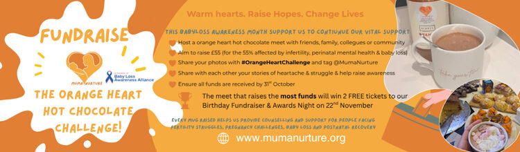 The Mini First Aid Sussex team are delighted to be supporting Muma Nurture in their Orange Heart Hot Chocolate fundraiser for October. October not only marks 7 years since this incredible charity started but it is baby loss awareness month.