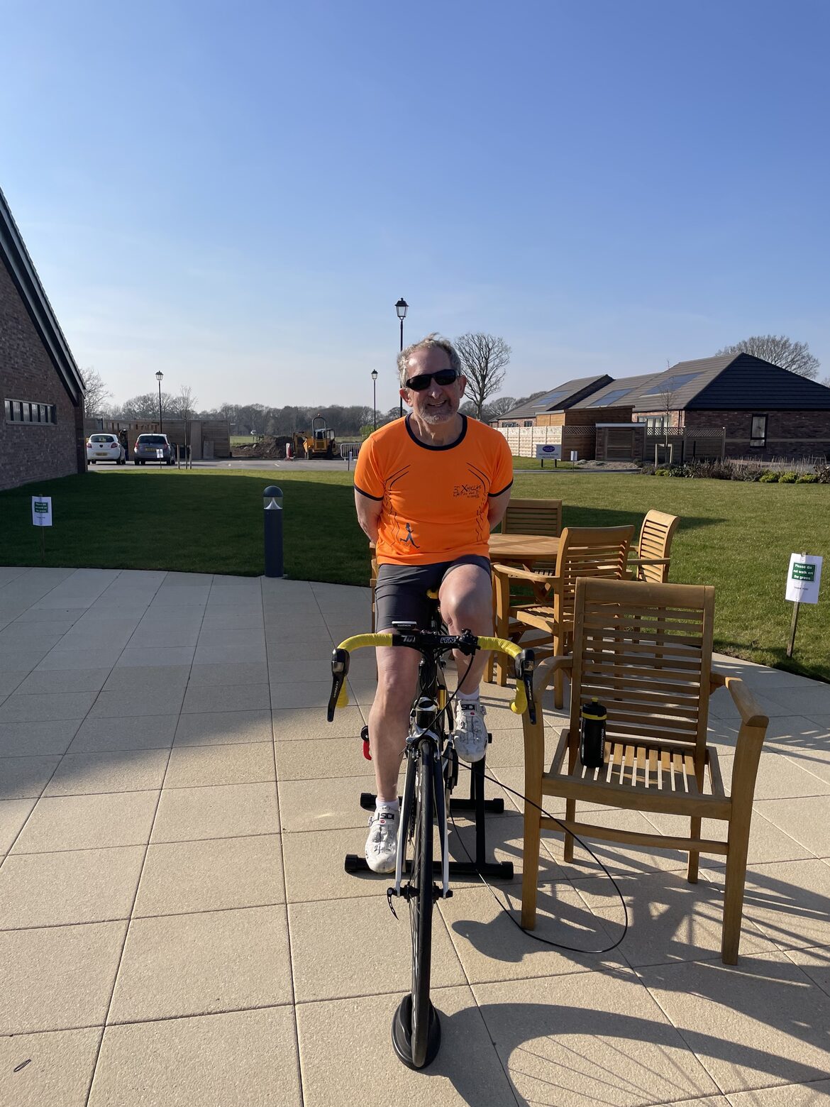 Nigel has completed the 5th cycle into his challenge! He has been supported by his key workers from Mind to help stay focused - as well as listening to his favourite bands; Coldplay and Genesis.