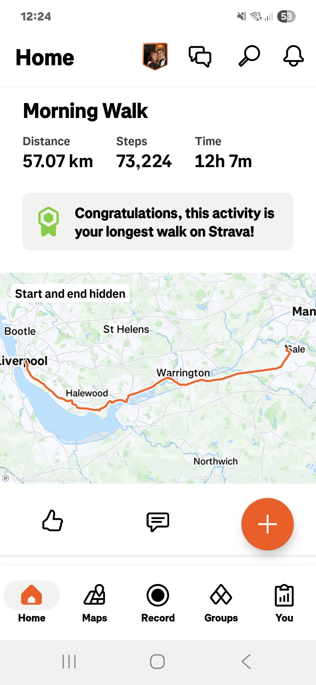 On the 7th August myself and John walked from Liverpool Lime Street to home in sunny Sale, South Manchester. It was 57K. We hit the wall around 40K, but pure determination drove us on to complete the walk. Wer know Leisha would have been proud