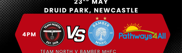 Team North is excited to announce a 1st charity football match against Bamber MHFC, taking place on May 23rd, 2026 at Druid Park in Newcastle upon Tyne at 4:15pm.